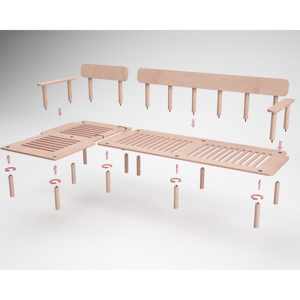 Tornavidalar, alyanlar, vidalar, uzun ve karmaşık kurulum şemaları olmadan, sadece eliniz ile ağaçları birbirine geçirerek pratik kurulum yapabilirsiniz.